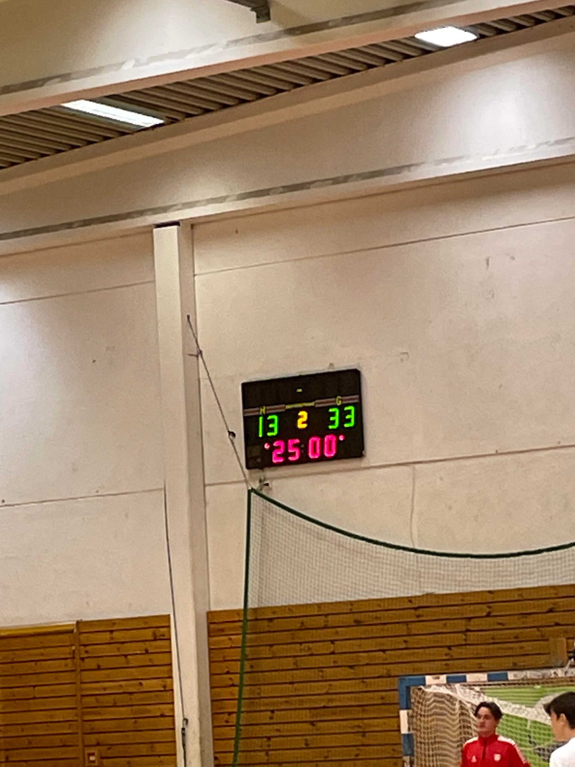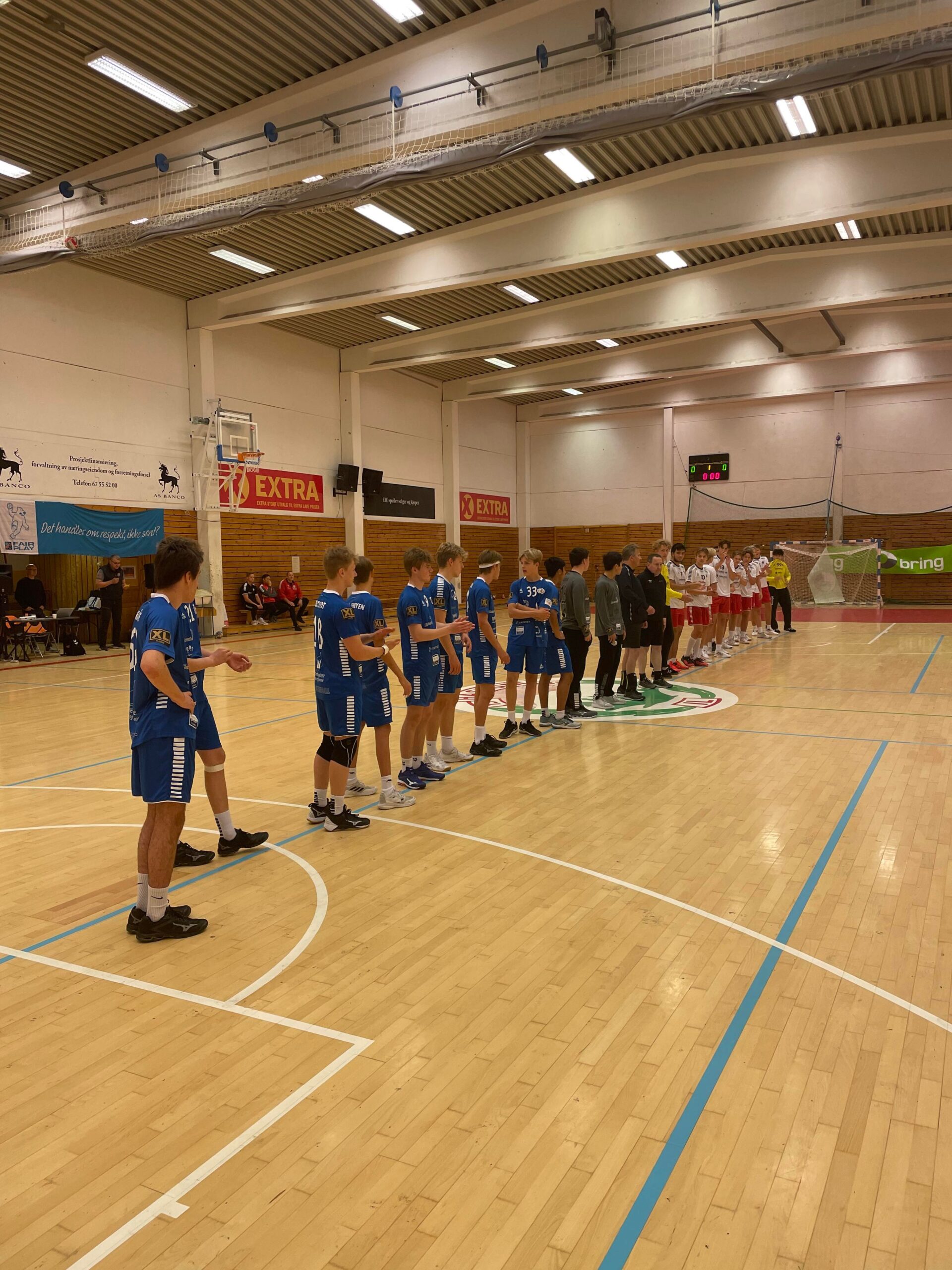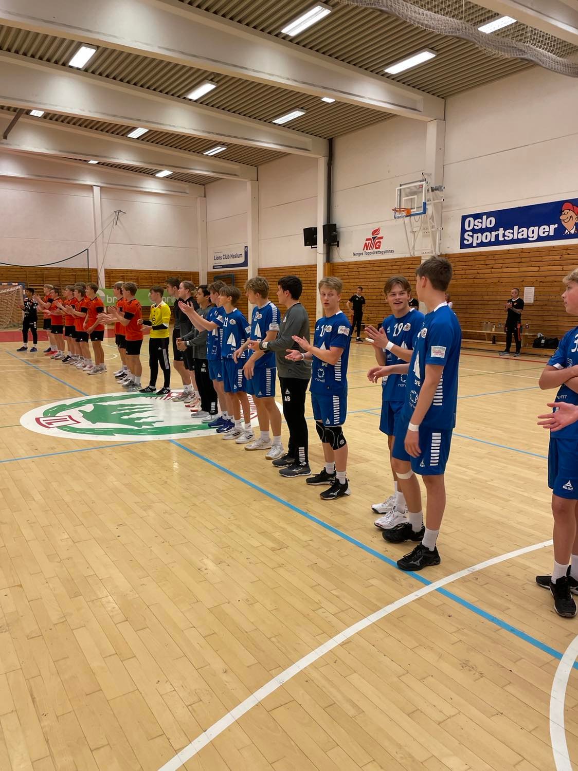 Haslum gikk i føringen fra start, men gutta holdt godt følge, så etter halvspilt omgang ledet Haslum bare 4-6. Men de fortsatte og putte og kunne gå til pause med ledelse 9-16, egentlig helg godkjent.