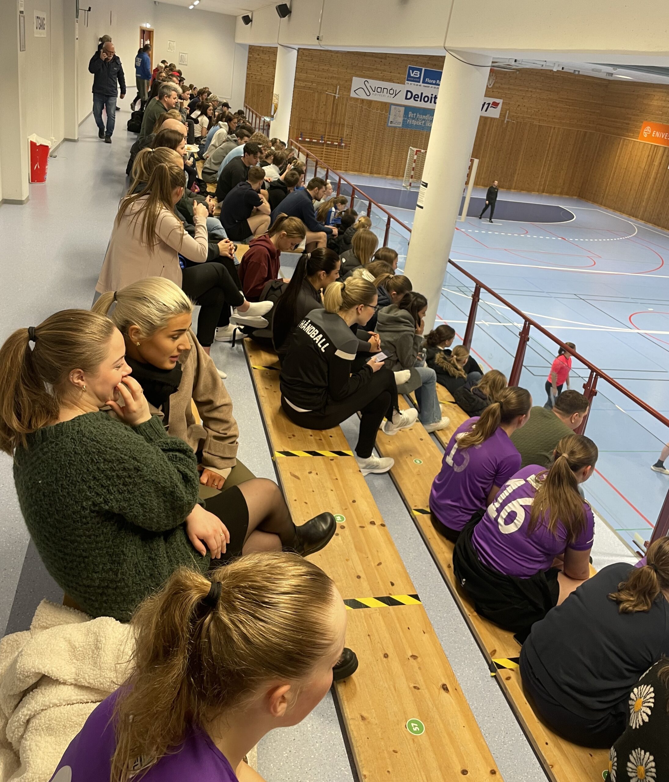 Det var full rulle på tribunen med yngre spillere med trommer og horn – veldig positivt. Videre var det mange foreldre og spillere som har en liten «pause», som heiet på lagene og kanskje angret på at de ikke hadde meldt seg på selv. Rotasjon av spillere fra kamp på banen til tribunen skapte også en egen positiv dynamikk.