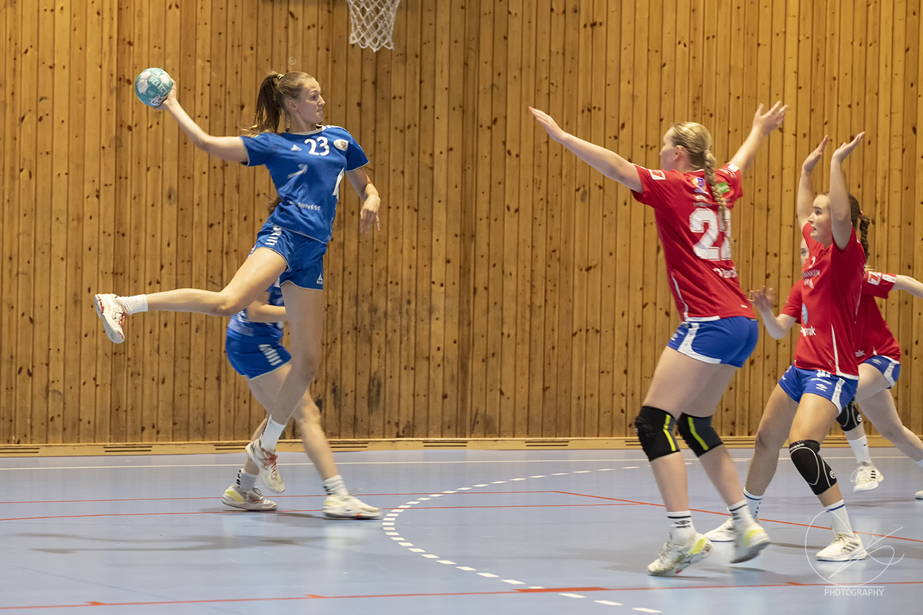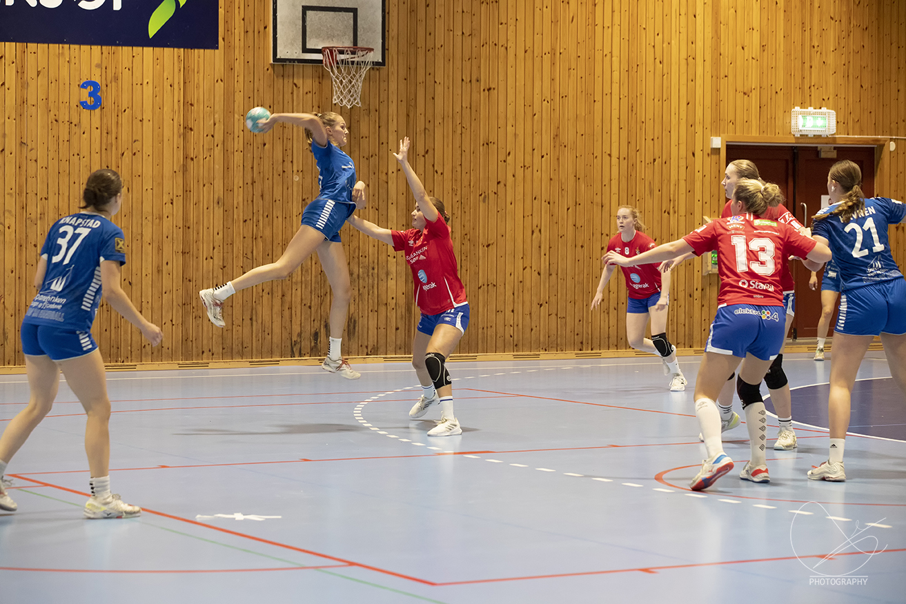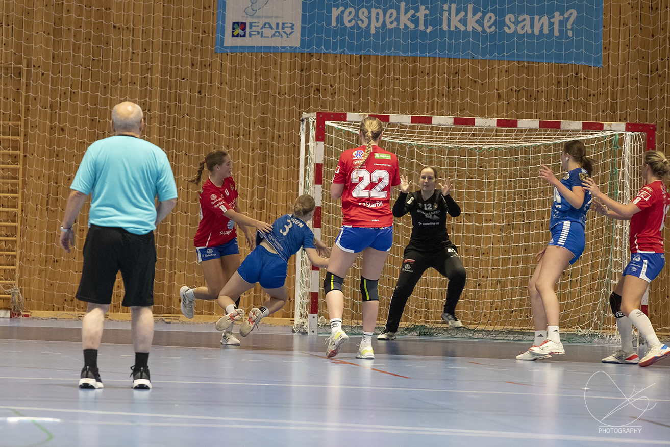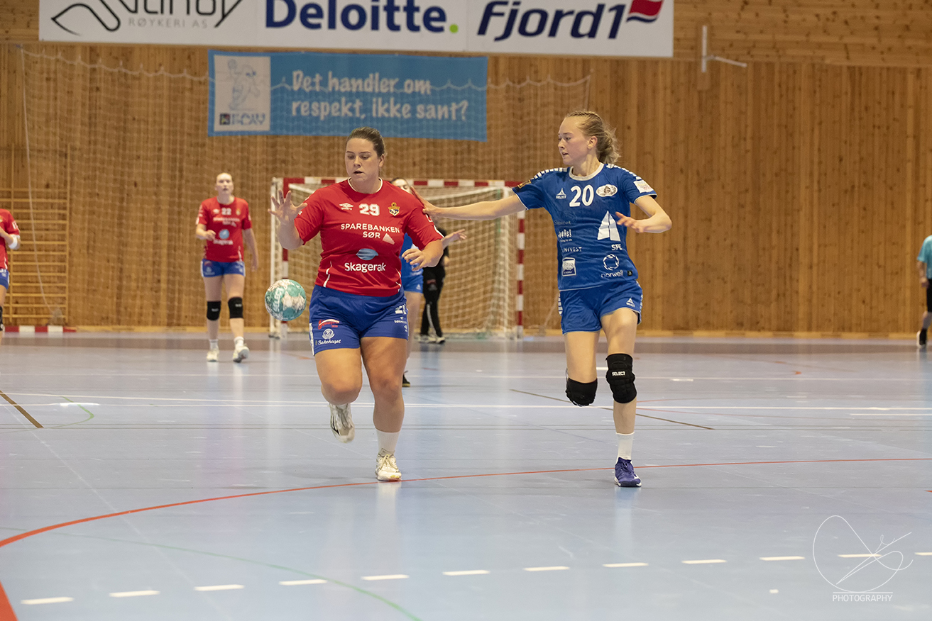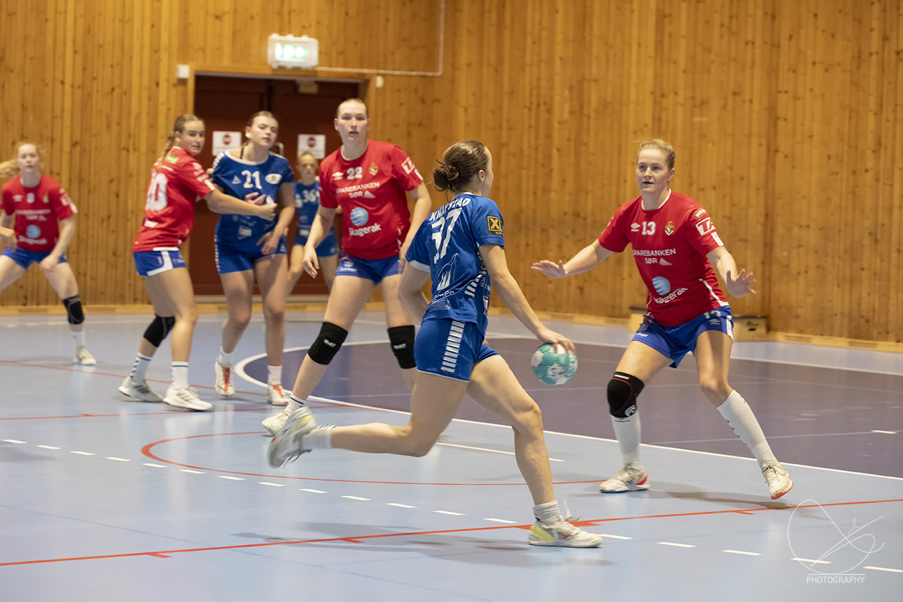 Sogndal satte inn et ekstra gir og kjørte på og etter drøye 20 minutter ledet de 28 – 8. Sogndal hadde et jevn og godt lag men Tale Hageli Hallén var i en særstilling med hele 12 scoringer. De siste 10 minuttene av kampen ble faktisk jevn, men Sogndal vant komfortabelt 32 – 12. Antakelig var noe av forskjellen på lagene at Sogndal sin gode keeper Sølvi Svidal Skartun var tilbake mellom stengene bak et godt forsvar.
