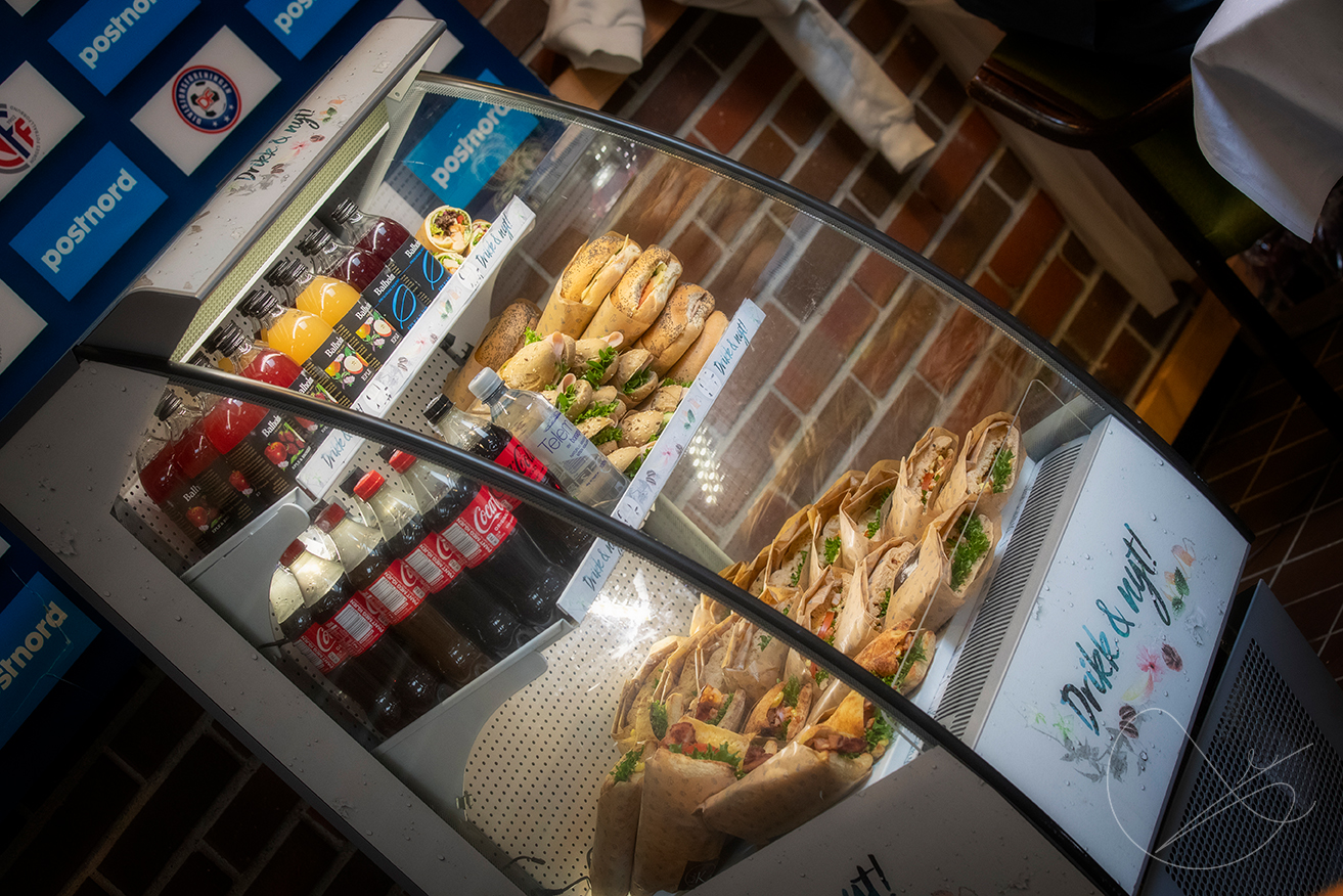 Det ble servert enkel lunsj med brødmat og pålegg, samt vann, saft/smoothie-drikke til måltidene. I tillegg ble det servert frukt i innlagte pauser for å sikre nok næring og energi.