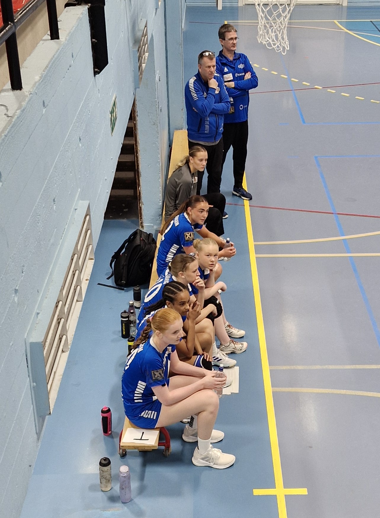 Motstanderen i andre kampen hadde særlig en solid venstrehendt spiller på høyre back. Våre spillere har dårlig kondis og derfor valgte vi å starte i 6-0 forsvar og klarte å avvise den farlige spilleren på 2’eren, men hun var flink og scoret i stedet noen mål innover midten. Hun var forskjellen på lagene og scoret 6 ganger før pausen.